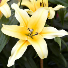 Лилии - многолетние травянистые, луковичные растения. Луковицы яйцевидной или округлой формы, 2-20см в диаметре, состоящие из отдельных сочных, незамкнутых чешуи, прилегающих друг к другу более или менее плотно. Стебли прямые, густо облиственные, зеленые, темно-пурпуровые или с темно-коричневыми штрихами, высотой 30-250см. У отдельных видов на стеблях, в пазухах листьев развиваются воздушные луковички — бульбочки, которые используют для размножения. Листья сидячие или черешковые, от 2-3 до 20см длиной, расположены в очередном порядке, реже мутовчато. Цветки одиночные или собраны по 2-4 в пирамидальные или зонтиковидные соцветия. Окраска белая, красная, оранжевая, розовая, сиреневая или желтая, большей частью с крапинками, полосками или пятнышками на внутренней стороне листочков околоцветника. Месторасположение: предпочитают солнечные, теплые, слегка затененные места. Почва: любая хорошо дренированная почва, богатая питательными веществами, рыхлая, песчано-глинистая, известкованная. Посадка: в сентябре, на глубину 15-20см. Размножение: клубнелуковицами и семенами. Использование: в групповых посадках, миксбордерах, клумбах, на срезку. ОТ-гибриды – сложные межгрупповые гибриды. Необыкновенные по красоте лилии. Массовое цветение начинается во второй половине июля. Это прекрасная группа лилий, и чем южнее они выращиваются, тем мощнее выглядят. Авокадо- высота растения 110см, цветок нежно-желтый, в центре заметно темнее. Зона зимостойкости: 4 зона ( -29,4/-34,4'C)