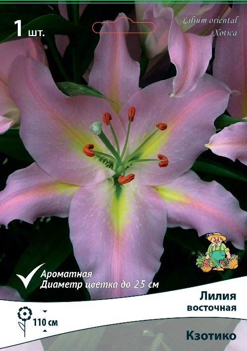 Лилии - многолетние травянистые, луковичные растения. Луковицы яйцевидной или округлой формы, 2-20см в диаметре, состоящие из отдельных сочных, незамкнутых чешуи, прилегающих друг к другу более или менее плотно. Стебли прямые, густо облиственные, зеленые, темно-пурпуровые или с темно-коричневыми штрихами, высотой 30-250см. У отдельных видов на стеблях, в пазухах листьев развиваются воздушные луковички — бульбочки, которые используют для размножения. Листья сидячие или черешковые, от 2-3 до 20см длиной, расположены в очередном порядке, реже мутовчато. Цветки одиночные или собраны по 2-4 в пирамидальные или зонтиковидные соцветия. Окраска белая, красная, оранжевая, розовая, сиреневая или желтая, большей частью с крапинками, полосками или пятнышками на внутренней стороне листочков околоцветника. Месторасположение: предпочитают солнечные, теплые, слегка затененные места. Почва: любая хорошо дренированная почва, богатая питательными веществами, рыхлая, песчано-глинистая, известкованная. Посадка: в сентябре, на глубину 15-20см. Размножение: клубнелуковицами и семенами. Использование: в групповых посадках, миксбордерах, клумбах, на срезку. Восточные гибриды – их называют аристократами в мире лилий за экзотическую красоту необычайно привлекательных ароматных цветков. Цветки очень крупные, просто огромные, экзотических окрасок: бело-розовые, белые, малиновые, розовые с крапинками и полосками по центру волнистых лепестков или без них. На зиму требуют укрытия. Цветут в июле-сентябре. Кзотико- высота растения 110см, цветок сиреневый с нежно-желтой полосой по центру лепестка.