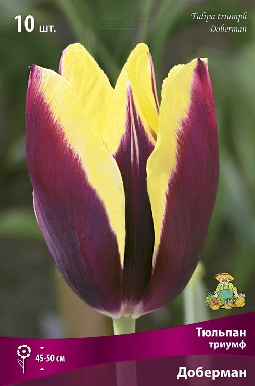 Триумф-тюльпаны - для тюльпанов этого класса характерны крупные бокаловидные цветки, довольно высокие цветоносы (40-70см) и хороший коэффициент размножения. Окраска цветов у тюльпанов этого класса самая разнообразная: от чисто-белой до темно-фиолетовой. Цветут Триумф-тюльпаны в конце апреля - начале мая, довольно продолжительное время и хорошо сохраняют форму бокала. Применяют тюльпаны данного класса довольно широко: на срезку, для оформления садов и парков, для выгонки в средние и поздние сроки. В настоящее время это самый многочисленный класс тюльпанов. Доберман - насыщенный, темно-бордовый с нежным желтым краем, высота растения 45-50 см Местоположение: участок должен быть расположен в солнечном месте и защищен от ветра. Важно, чтобы он не имел неровностей, в которых весной и осень будет застаиваться вода - это может привести к вымоканию и загниванию луковиц. Почва: тюльпаны - растения довольно неприхотливые и могут мириться с любой садовой почвой, но наилучшей для них является рыхлая, хорошо дренированная, умеренно увлажненная, т.е. суглинистая и супесчаная почва с нейтральной или слабощелочной реакцией. Тяжелую суглинистую почву можно улучшить добавлением песка и торфа. Посадка: тюльпаны высаживают осенью, когда температура почвы на глубине 10 см опустится до 9-10°С, в средней полосе это вторая половина сентября - начало октября. Глубина посадки для садовых тюльпанов – 15-20см, ботанических -10см. Расстояние между растениями 10-20см. Луковицы садовых тюльпанов нужно выкапывать каждый год. Место посадки тюльпанов лучше менять 1 раз в 4-5 лет. Размножение: луковицами-детками при выкапывании. Использование: для озеленения, на срезку.