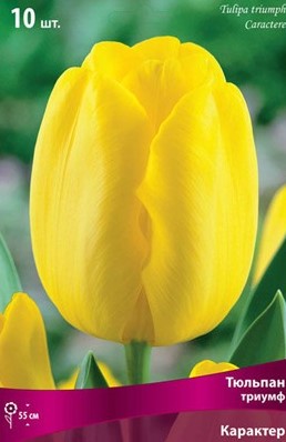 Триумф-тюльпаны - для тюльпанов этого класса характерны крупные бокаловидные цветки, довольно высокие цветоносы (40-70см) и хороший коэффициент размножения. Окраска цветов у тюльпанов этого класса самая разнообразная: от чисто-белой до темно-фиолетовой. Цветут Триумф-тюльпаны в конце апреля - начале мая, довольно продолжительное время и хорошо сохраняют форму бокала. Применяют тюльпаны данного класса довольно широко: на срезку, для оформления садов и парков, для выгонки в средние и поздние сроки. В настоящее время это самый многочисленный класс тюльпанов. Карактер - высота растения 55 см, цветок желтый. Местоположение: участок должен быть расположен в солнечном месте и защищен от ветра. Важно, чтобы он не имел неровностей, в которых весной и осень будет застаиваться вода - это может привести к вымоканию и загниванию луковиц. Почва: тюльпаны - растения довольно неприхотливые и могут мириться с любой садовой почвой, но наилучшей для них является рыхлая, хорошо дренированная, умеренно увлажненная, т.е. суглинистая и супесчаная почва с нейтральной или слабощелочной реакцией. Тяжелую суглинистую почву можно улучшить добавлением песка и торфа. Посадка: тюльпаны высаживают осенью, когда температура почвы на глубине 10 см опустится до 9-10°С, в средней полосе это вторая половина сентября - начало октября. Глубина посадки для садовых тюльпанов – 15-20см, ботанических -10см. Расстояние между растениями 10-20см. Луковицы садовых тюльпанов нужно выкапывать каждый год. Место посадки тюльпанов лучше менять 1 раз в 4-5 лет. Размножение: луковицами-детками при выкапывании. Использование: для озеленения, на срезку.